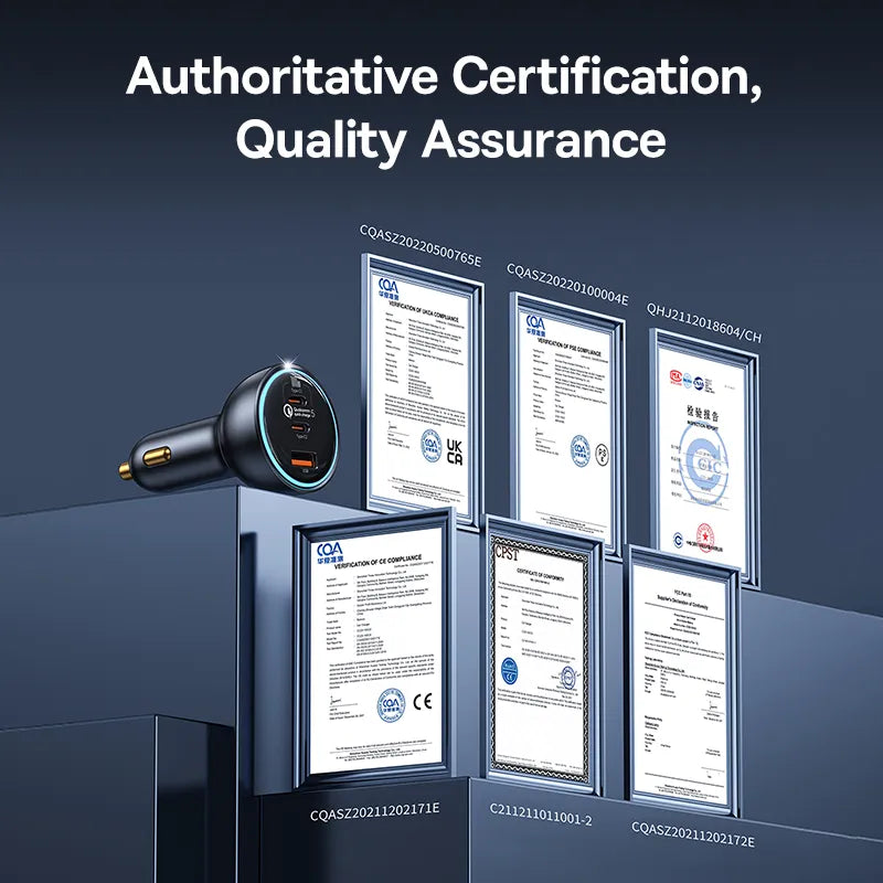 Equipado con tecnología Qualcomm Quick Charge 5, este cargador multipuerto redefine la velocidad y eficiencia de carga en tu automóvil.